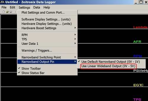 the Zeitronix Data Logger software may be used to configure the output AFR
