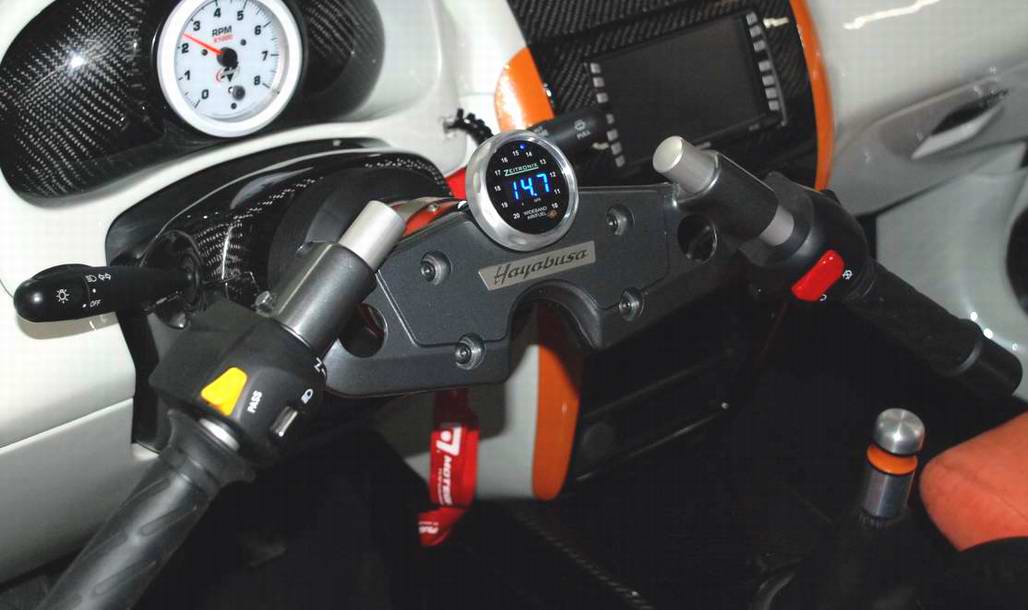 viewed on the ZR-2 gauge mounted on the Hayabusa handlebar steering wheel.