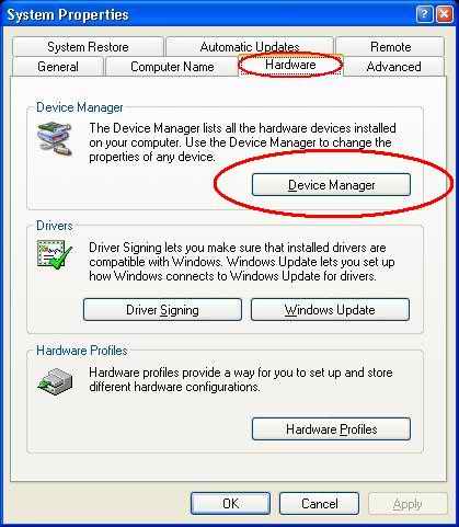 2. Next open the "Hardware" tab and click on the "Device Manager" button.